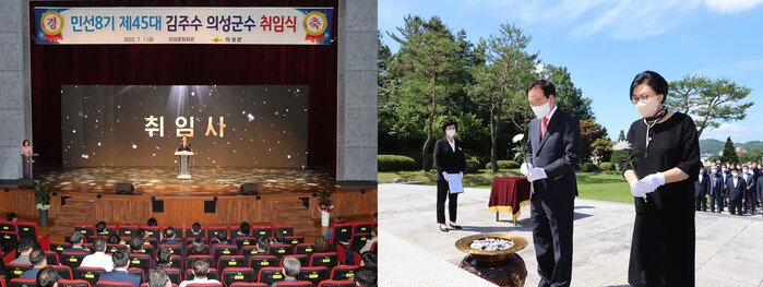 [로컬세계=박상진 기자]경북 의성군(군수 김주수)은 1일 의성문화회관에서 직원 등 500여명과 함께 민선8기 제45대 김주수 의성군수 취임식을 가졌다.