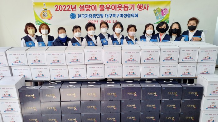 [로컬세계 박세환 기자]한국자유총연맹 대구북구지회(회장 김문룡)는 북구여성협의회(회장 김철숙) 주관으로 지난 18일 설맞이 꾸러미 100세트를 북구 관내 소외계층 및 탈북민, 다문화 가정에 전달했다.