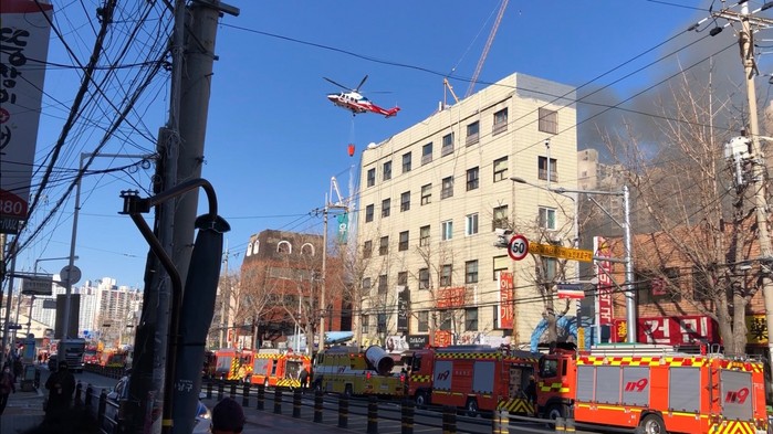 다행히 화재가 난 곳 인근은 부산항이 있어서 소방헬기가 소방용수를 급수하기에 용이했고, 수차례에 걸쳐 진화 작업을 할 수 있었다.
