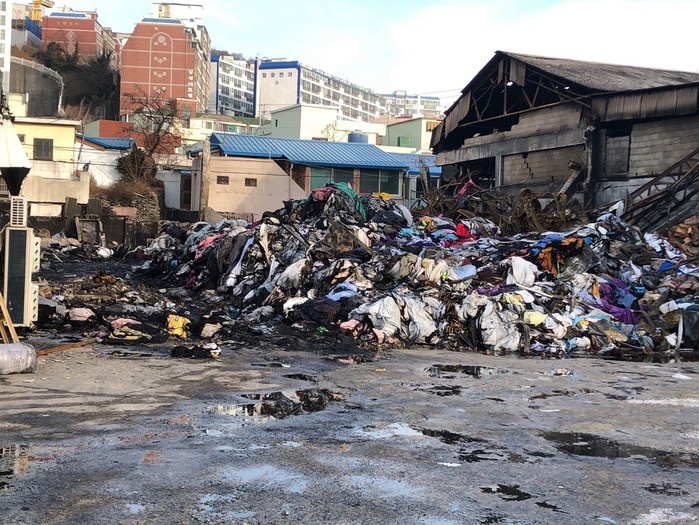 ▲의류회사와 의류창고 건물은 흔적도 없이 사라지고 잿더미만 남았다. |