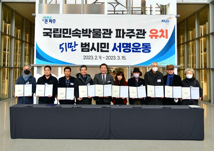 또한, 51만 파주시민의 뜻을 모은 ‘국립민속박물관 파주관 유치 범시민 서명운동’ 진행을 현장에서 발표하며 첫 번째로 서명했다.