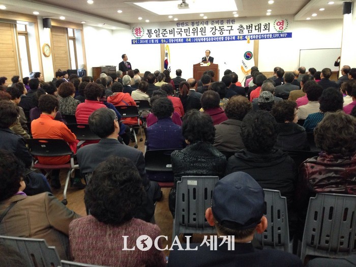 ▲ 3일 서울 강동구민회관에서 남북통일운동국민연합이 시민 등 250여명이 참석한 가운데 강동구 통일준비국민위원 출범대회를 열고 있다. © 로컬세계 |