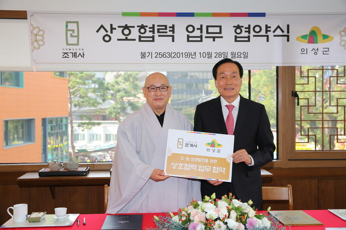 협약에는 ▲의성군 우수농산물 공급 ▲조계사내 직거래장터 운영 ▲상호 협력사업 등에 관한 내용이 포함돼 있다.