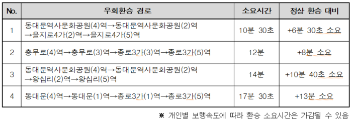 ▲4호선⟷5호선 우회환승 추천 경로 및 예상 소요시간.(서울교통공사 제공) |