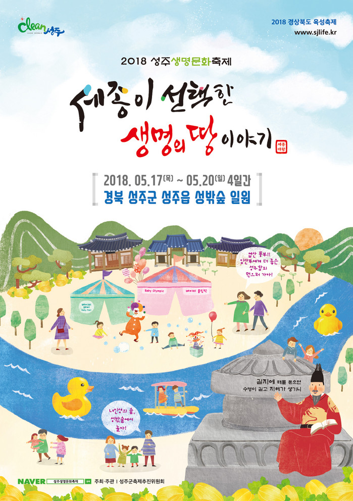 올해로 7회째를 맞는 '2018 성주생명문화축제'는 5월 17일부터 20일까지 4일간 성밖숲 일원에서 열리는 국내 유일 생명문화축제로, 지난해에는 40여만 명의 관람객이 찾았다. 특히 올해는 ‘세종이 선택한 생명의 땅 이야기’를 주제로 성주의 생명문화 가치를 축제를 통해 전달한다.