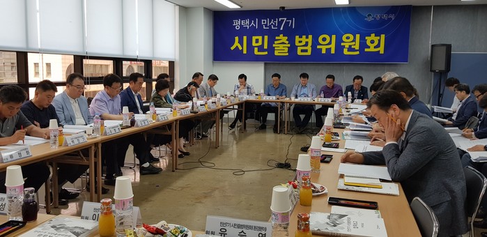 | ▲정장선 당선인과 민선7기 시민출범위원회가 기획조정실 업무보고를 청취하고 있다. |