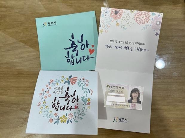 [로컬세계 김병민 기자]경기 광주시는 생애 첫 주민등록증을 발급받는 만 17세 청소년들에게 신규 주민등록증 교부 시 축하 메시지가 담긴 축하 카드를 함께 전달한다고 15일 밝혔다.