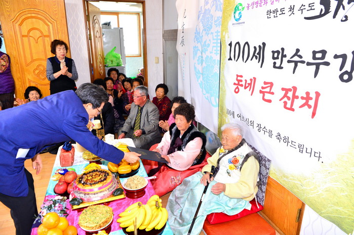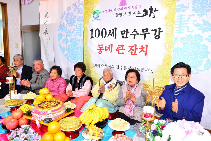 현재 고창군 관내에는 100세 어르신 14분이 생존해 있다. 고창군은 앞으로도 100세(천수, 상수)를 하늘이 내려준 나이라는 큰 의미를 되살려 마을 잔치를 확대할 계획이다.