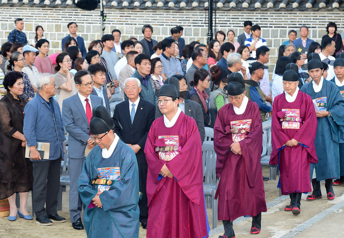 수원시는 이날 화령전의 운한각·복도각·이안청이 국가지정문화재 보물 지정을 기념해 운한각에서 고유제(告由祭)를 지내고 축하연희를 열었다.