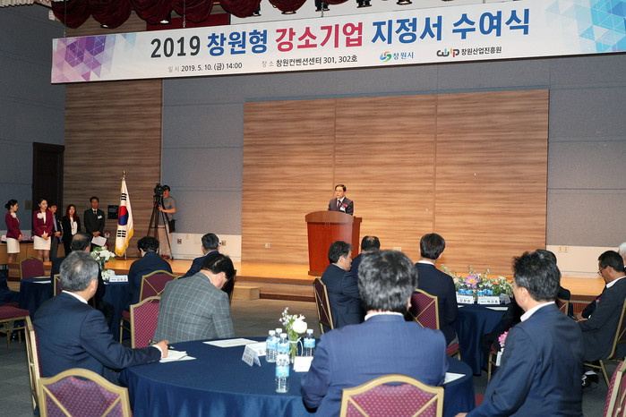 [로컬세계 한용대 기자]경남 창원시는 10일 창원컨벤션센터에서 창원산업진흥원와 세계시장을 선도할 ‘2019년도 창원형 강소기업 지정서 수여식’을 개최했다고 밝혔다.