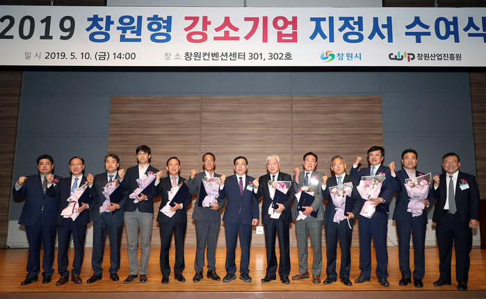 | ▲창원시는 10일 창원컨벤션센터에서 창원산업진흥원와 세계시장을 선도할 ‘2019년도 창원형 강소기업 지정서 수여식’을 개최했다.(창원시 제공) |