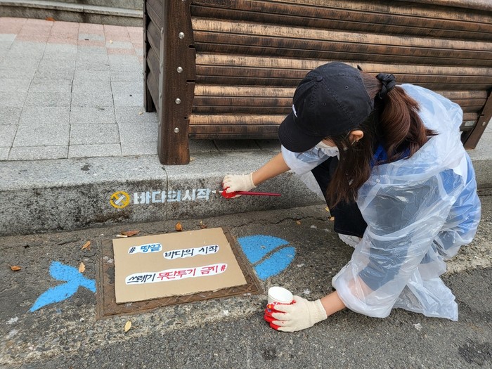 [로컬세계 한용대 기자]경남 창원시(시장 허성무)는 5일 성산구 상남동 분수광장 일원에서 우수관(빗물받이)이 바다의 시작임을 알리는 ‘땅끝 바다의 시작’ 우수관 페인팅 활동을 실시했다고 밝혔다.