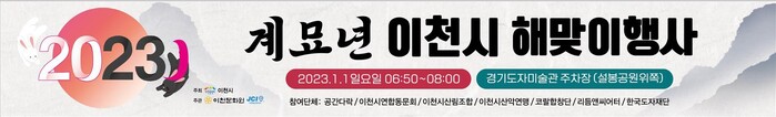 이천시가 주최하고 이천청년회의소와 이천문화원이 공동 주관하는 2023년 해맞이행사는 공간다락, 이천시연합동문회, 이천시산림조합, 이천시산악연맹, 코랄합창단, 리듬앤씨어터, 한국도자재단 등 다양한 공공기관과 사회단체가 힘을 모아 이천시민이 희망찬 새해를 맞이하고 이천에 대한 애향심과 지역문화발전에 대한 동참의식을 제고할 수 있도록 다양한 체험행사와 공연 등을 준비했다.
