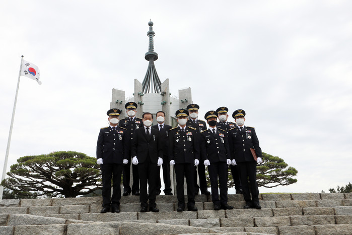 이날 충혼탑 참배에는 남해지방해양경찰청장을 비롯하여 부산해양경찰서장, 중앙해양특수구조단장, 해양경찰정비창장 등 지역 기관장 및 중요 간부급만 참석하였으며 코로나19 확산 방지를 위해 방역수칙을 철저히 준수한 가운데 간소하게 진행됐다.