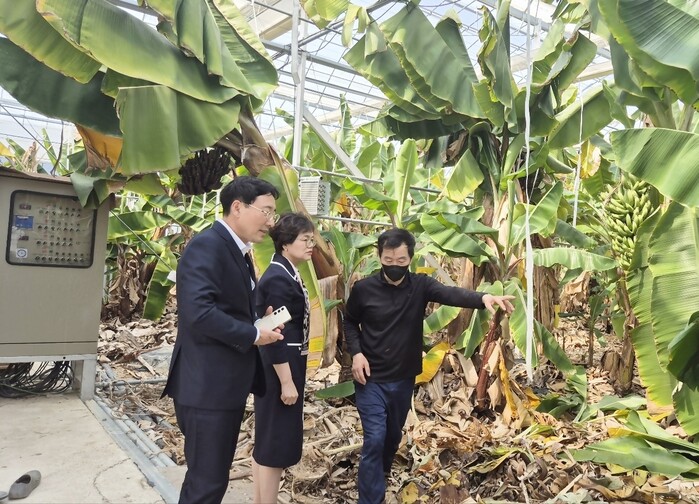 농림수산업자신용보증기금(이하 농신보) 조은주 상무는 18일 경북 포항시 소재 농신보 보증지원 스마트팜 우수농가 만강바나나 농장에 방문하여 현장간담회를 실시하고 청·장년 귀농창업 보증지원 활성화에 대한 의견을 수렴했다.