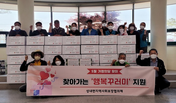 홍정묵 성내면장은 “어르신들에게 전달한 행복꾸러미로 행복한 가정의 달이 되길 바라며, 어려운 이웃을 위해 노력해주시는 성내면지역사회보장협의체 위원분들게 감사드린다”고 전했다.