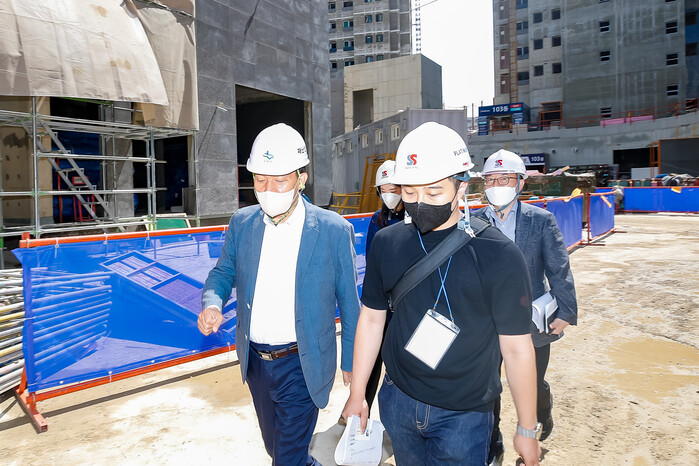 | ▲이재준 수원특례시장 당선인이 14일 쌍용 더 플래티넘 오목천역 공사 현장 점검에 나섰다. 수원시 제공 |