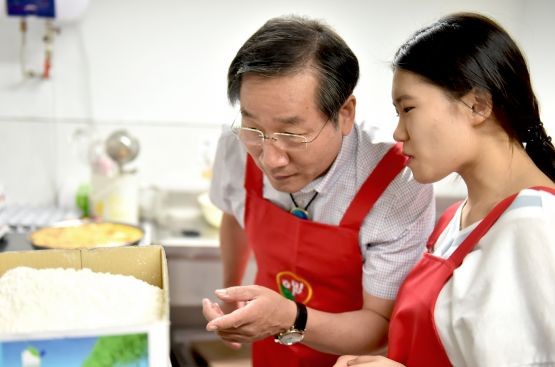 [로컬세계 이민섭 기자]유정복 인천시장이 3일 7남매 가족 및 봉사자들과 함께 빵만들기에 동참해 봉사자들과 소통의 시간을 가졌다고 밝혔다.
