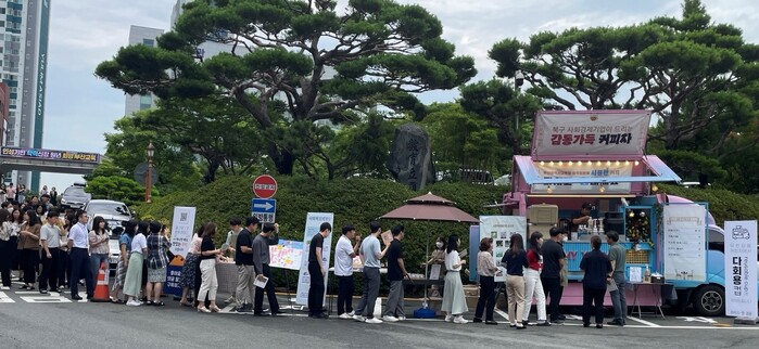 ▲부산 북구는 찾아가는 사회적경제 감동가득 커피차 운영. 북구 제공 |