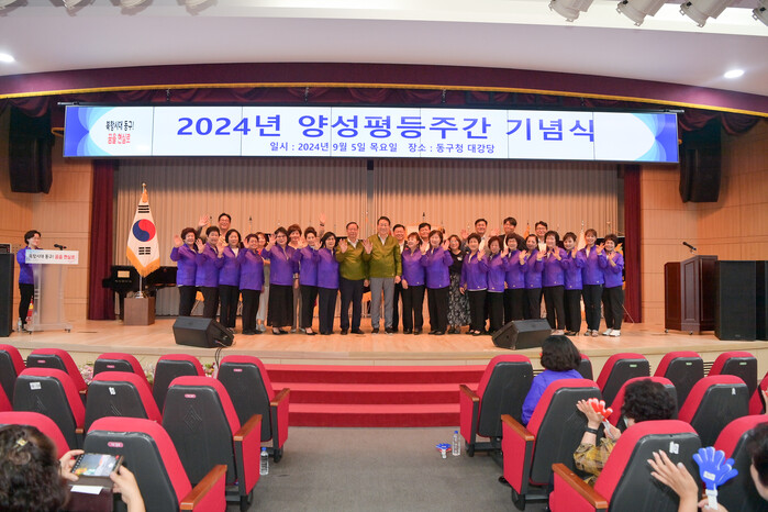 이날 기념식은 평등부부와 여성지위 향상 유공구민 표창 수여, 화합의 축하공연 등으로 동구여성단체회원 등 300여 명이 참석해 진행했다.