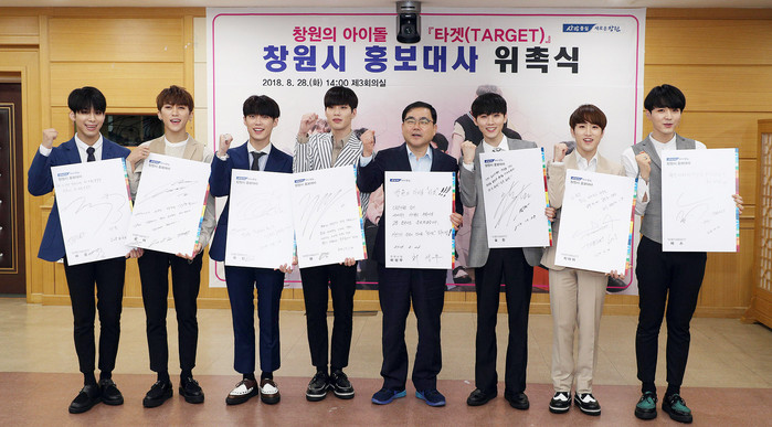 이날 창원시청에서 열린 홍보대사 위촉식에는 허성무 창원시장과 ‘타겟’의 멤버 7명이 모두 참석했으며, 소속사인 JSL컴퍼니의 이정민 대표도 함께 했다.