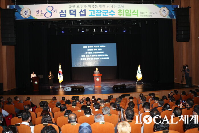 심덕섭 고창군수는 1일 오후 고창문화의전당에서 군민과 공무원 등 600여명이 참석한 가운데 취임식을 갖고 “군민 모두가 행복한 활력 넘치는 고창을 여러분과 함께 만들어 가겠다”며 민선 8기 고창군정 운영방침을 밝혔다.