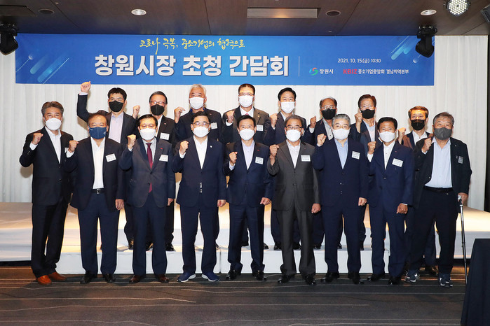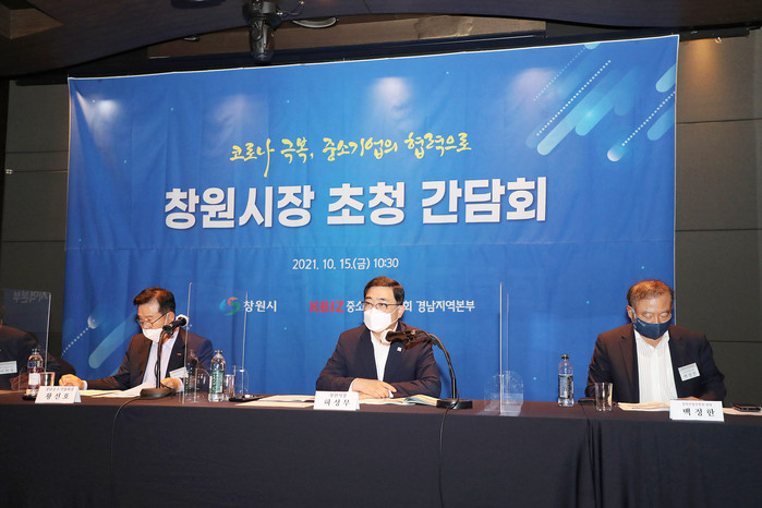 간담회는 중소기업중앙회의 주관으로 열렸으며, 허성무 창원시장, 황선호 경남중소기업회장을 비롯한 15개 지역 중소기업협동조합 이사장, 백정한 창원산업진흥원장 등 20여명이 참석했다. 코로나19 장기화에 따른 매출 감소 등 경영위기를 겪고 있는 중소기업과 소상공인의 애로・건의사항을 청취하고 해결방안을 논의하기 위해 마련됐다.