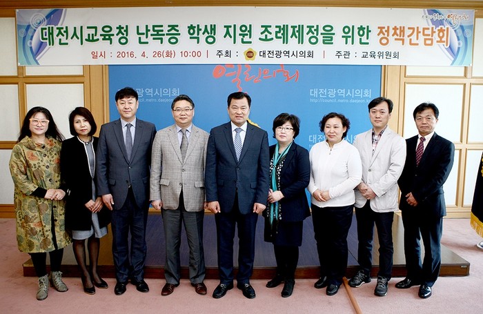 [로컬세계 조윤찬 기자]송대윤 대전시의원(더민주·교육위원장)은 26일 대전시의회 대회의실에서 ‘난독증 학생 지원 조례 제정을 위한 정책간담회’를 개최했다.