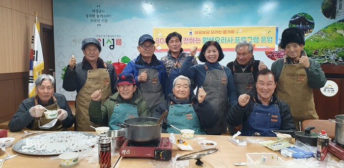 [로컬세계=박상진 기자] 경북 의성군 춘산면은 지난 21일 80세이상 남자어르신 10명을 대상으로 ‘팔십에 도전하는, 할배 요리사’ 프로그램 운영했다고 23일 밝혔다.