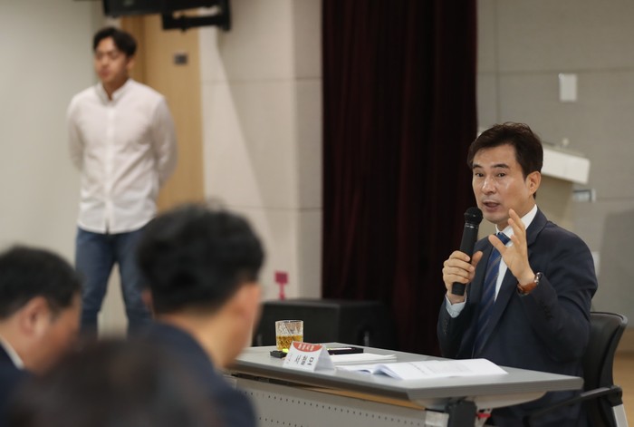 | ▲28일 화산동 행정복지센터에서 '찾아가는 시정'이 실시된 가운데 서철모 화성시장이 이야기를 하고 있다.(화성시 제공) |