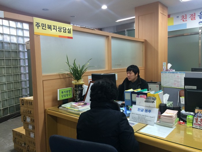 ▲서울 마포구청 민원실에서 한 어르신이 복지정책 관련 문의를 하고 있다. |