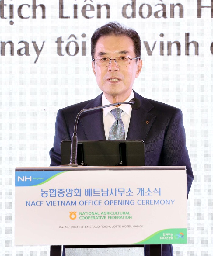 ▲ 이성희 농협중앙회장은 4일(현지시각) 베트남 하노이에서 열린 ‘농협중앙회 베트남사무소 개소식’에서 환영사를 하고 있다. 농협 제공 |