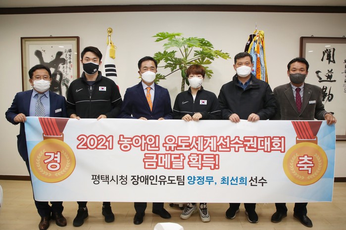 [로컬세계 김병민 기자]경기 평택시는 지난 4일 정장선 시장이 '2021 농아인 유도 세계선수권대회'에서 금메달을 획득한 양정무, 최선희 선수를 격려했다고 5일 밝혔다.