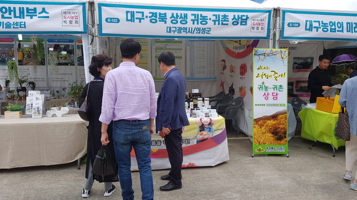 군은 ‘대구‧경북 상생 귀농귀촌 상담’부스를 열고 귀농인 연합회와 함께 △농산물 전시 홍보 △귀농귀촌 정책안내 △귀농준비과정 △인구유치를 위한 전입세대 지원정책 종합 안내 등 귀농귀촌의 최적지인 의성군의 장점을 홍보했다.