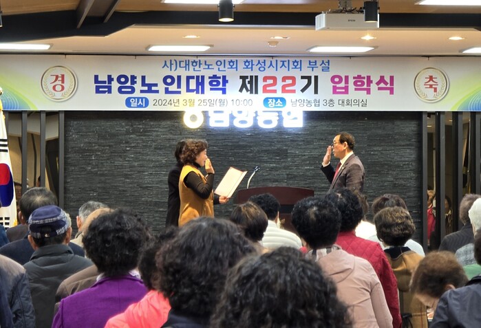 [로컬세계=임종환 기자]경기 화성시가 지난 25일 남양농협에서 2024년 남양노인대학 입학식을 열고 어르신들의 배움에 대한 열정을 응원했다.