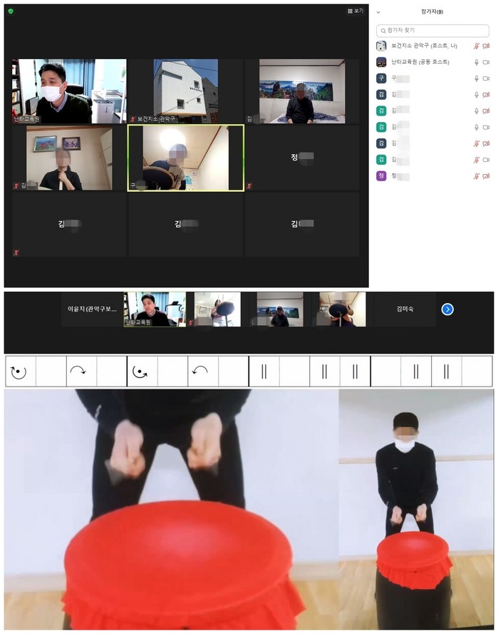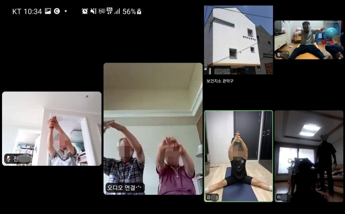 ▲비대면 그룹운동 교실 프로그램 진행 화면. 관악구 제공 |