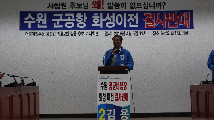 [로컬세계 최원만 기자]더불어민주당 화성갑 김용 후보가 수원군공항 화성시 이전을 반대했다.