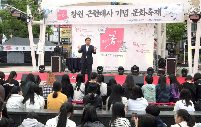 [로컬세계 권인진 기자]허성무 창원시장이 지난 27일 상남분수광장에서 열린 ‘창원근현대사 기념 문화축제’에 토크 강연자로 깜짝 등장해 화제다.