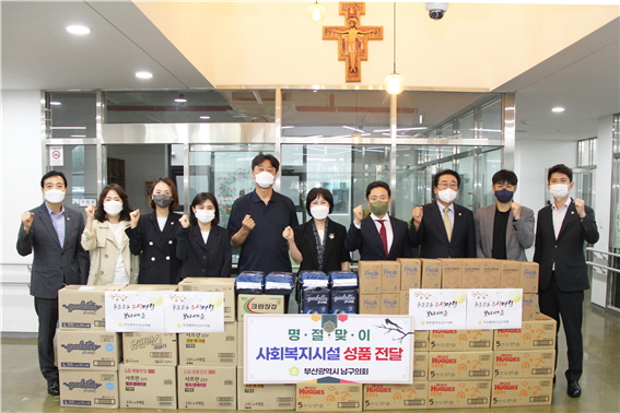 ▲부산 남구의회는 성프란치스코의집을 방문, 150만원 상당의 생필품을 전달했다. 남구의회 제공 |