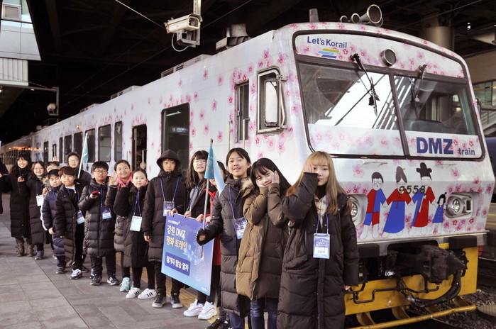 강북어린이 기자단 싣고 출발한 강원 DMZ 평화트레인은 서울역에서 백마고지역을 오가며 안보관광투어를 하고 어린이 기자단들이 평화메시지를 작성하게 된다.(사진=강원도 제공)