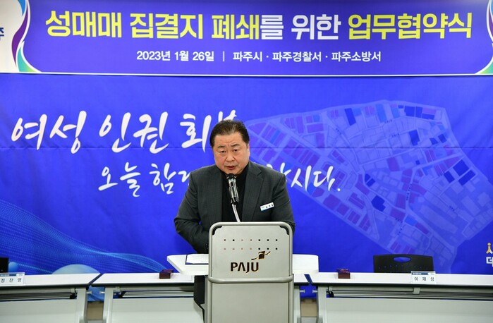 업무협약은 성매매 집결지 폐쇄를 목적으로 인권이 존중되는 여성친화도시 조성을 위해 파주시, 파주경찰서, 파주소방서 3자가 체결했다.