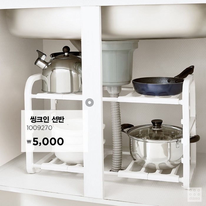 수납용품은 공간의 효율을 높일 수 있는 상품으로 마련했다. ‘씽크 인 선반’은 씽크대 밑에 배수구까지 고려해 상품이 디자인됐고, ‘스텐 걸이식 선반’ 은 수납장이 부족한 사람에게 안성맞춤인 상품이다. ‘봉투걸이’ 는 조리 중 발생하는 작은 쓰레기를 처리하는데 유용하고, ‘음식물 수거통’ 은 흡착 방식으로 좁은 공간에서도 사용이 가능해, 공간 활용성이 높다.