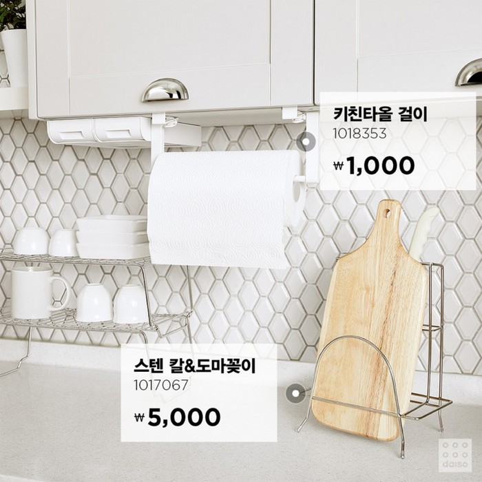 | ▲(주)아성다이소의 '키친타올 걸이'와 '스텐 칼&도마꽂이' |