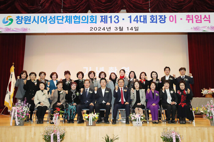 창원시 여성단체협의회는 14일 여성회관 창원관에서 회장 이·취임식을 개최해 지난해 여성단체협의회를 이끈 제13대 강영임 회장의 노고를 격려하고 제14대 김미양 신임회장의 취임을 축하했다.