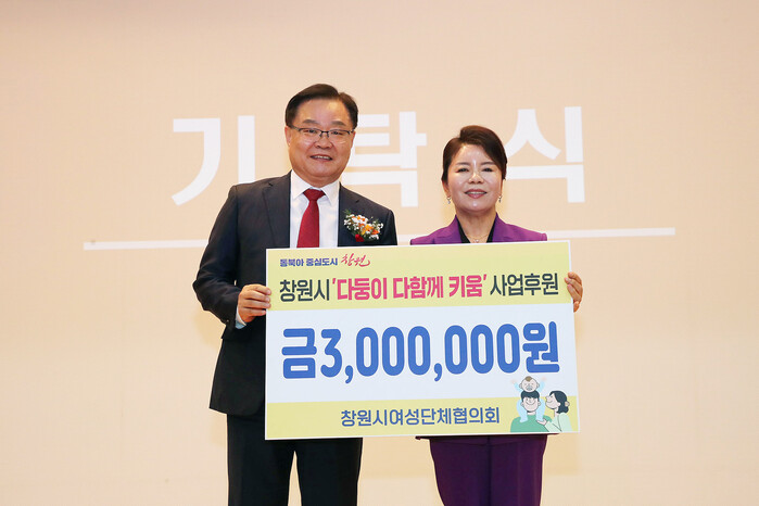 ▲ 왼쪽부터 홍남표 창원시장, 김미양 창원시 여성단체협의회장 |