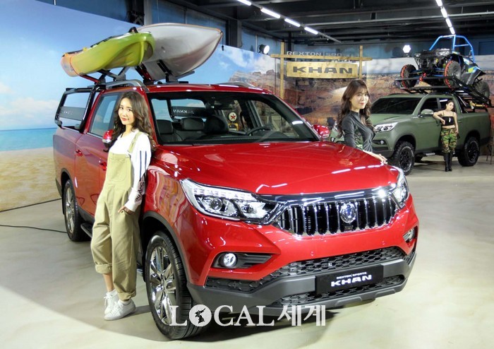 ▲모델이 렉스턴 스포츠 칸을 선보이고 있다. |