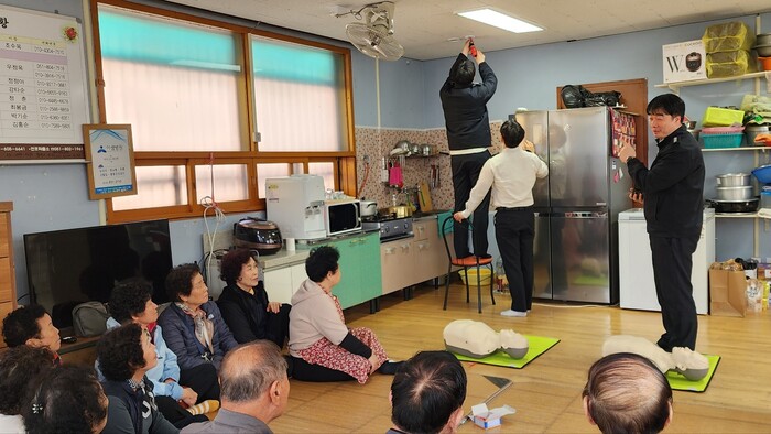 주요 내용은 ▲주택용 소방시설(소화기,단독경보형 감지기)설치 및 사용법 ▲화재시 대피요령 및 피난 방법 ▲노인 대상 응급상황 별 대처 방법 등으로 경로당 내 소방안전 시설의 점검과 시설이용 노인을 대상으로 교육이 병행된다.
