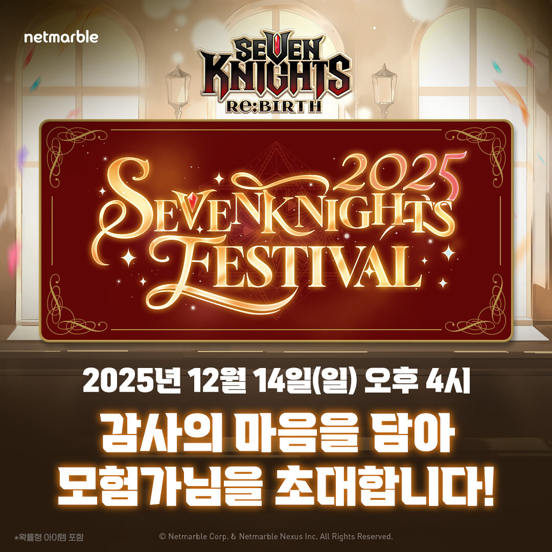 [로컬세계 = 마나미 기자] 넷마블(대표 김병규)은 수집형 RPG <세븐나이츠 리버스(Seven Knights Re:Birth)>(개발사 넷마블넥서스)의 오프라인 이용자 행사 ‘2025 세븐나이츠 페스티벌’을 개최한다고 밝혔다.