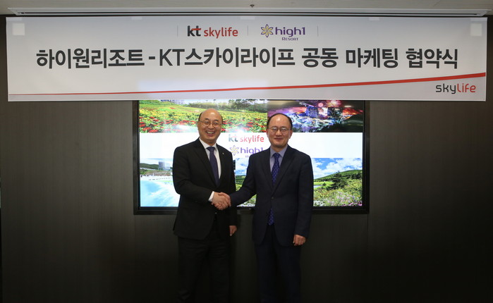 이날 협약식에는 하이원리조트 문태곤 대표이사와 KT스카이라이프 강국현 대표이사 등 양사 관계자가 참석해 상호 마케팅 협력 및 교류를 통해 레저기업와 미디어 기업 간 시너지를 창출해 나가기로 약속했다.