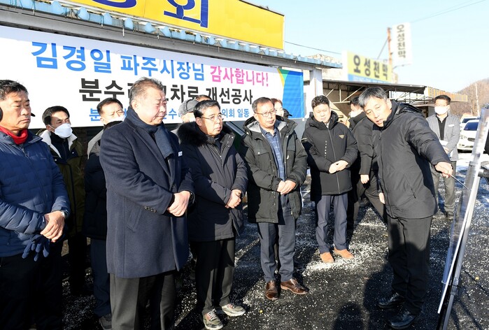 [로컬세계 = 이영원 기자]김경일 파주시장은 17일 국지78호선 분수1리 교차로개선 개설 현장을 방문해 현장의 목소리를 청취하고 최종 점검했다.